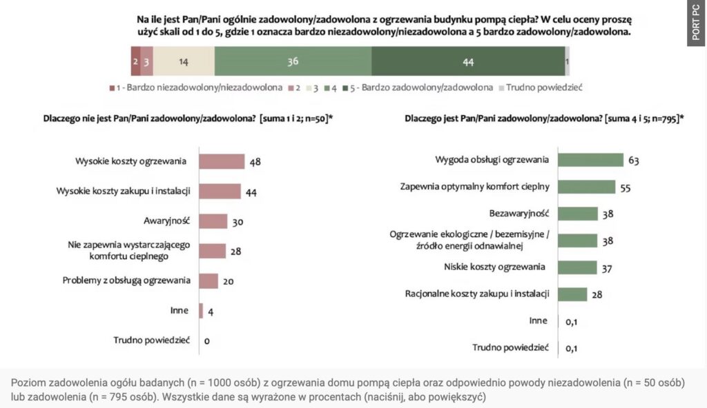„Dla porównania – w innym polskim badaniu, zrealizowanym w kwietniu 2025 przez Instytut Ekonomii Środowiska, ale tym razem na reprezentatywnej grupie 1000 użytkowników różnych technologii grzewczych, 85 proc. respondentów korzystających z pomp ciepła uznało, że to najlepsze źródło ogrzewania dla domu. Natomiast spośród użytkowników kotłów na pellet 70 proc. wskazało, że kocioł na pellet to najlepsze rozwiązanie, a spośród użytkowników kotłów gazowych – 61 proc. wybrało kotły gazowe. Satysfakcja z zastosowania pomp ciepła jest więc zdecydowanie najwyższa” – chwali się PORT PC.